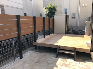 国分寺市 Before After Before After 施工場所国分寺施工費用–施工期間約1週間お庭のリフォームをさせて頂きました。目隠しの人工木フェンスとウッドデッキ、インターロッキングによる施工です。