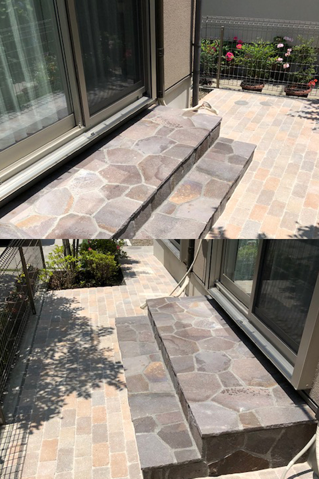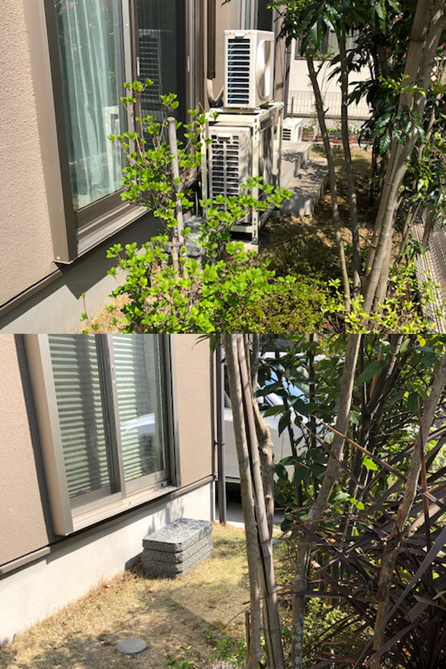 国分寺市 Before After Before After 施工場所国分寺施工費用100万以内施工期間約1週間お庭のリフォームをさせて頂きました。不要な植栽を伐採し、ジャワ鉄平石とインターロッキングによりローメンテナンスのお庭に施工させて頂きました。