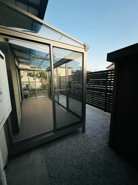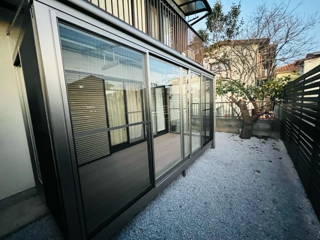 木目調フェンスにて、サニージュという、サンルームを設置させて頂きました。