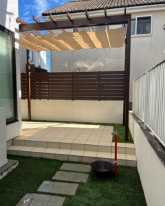 練馬区 Before After Before After 施工場所練馬区施工費用100万以下施工期間1日タカショーのパーゴラを施工させて頂きました。シェードで暑い日差しを避けれてオシャレで快適な空間を作れました。