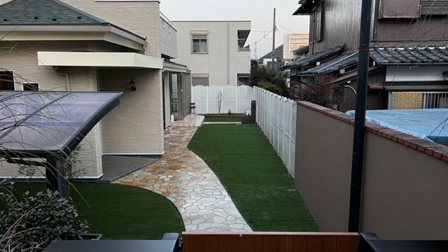 塗り壁もジョリパットフレッシュにて新たにし、お子さんお孫さんとプライベートな空間で楽しめるお庭作りのお手伝いをさせて頂きました。