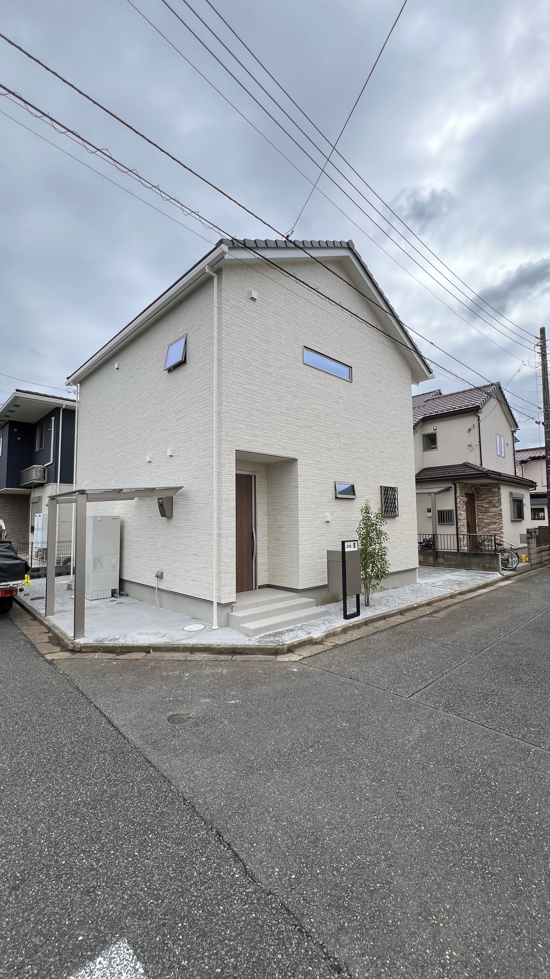 シンプルに駐輪と駐車スペースを作成させて頂き、機能性のある門柱とアクセントに植栽工事にて仕上げさせて頂きました。